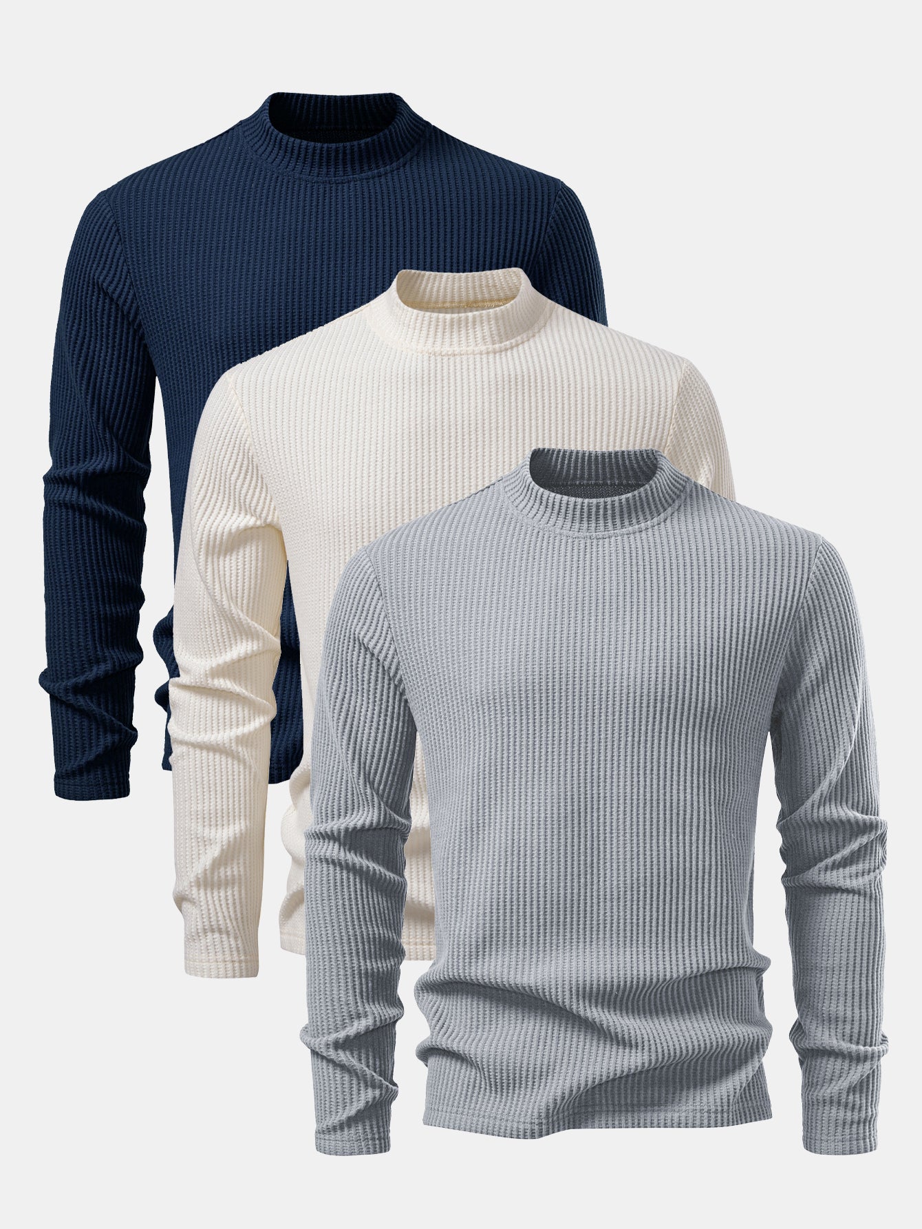 3ピース 長袖 ワッフル モックネック Tシャツ