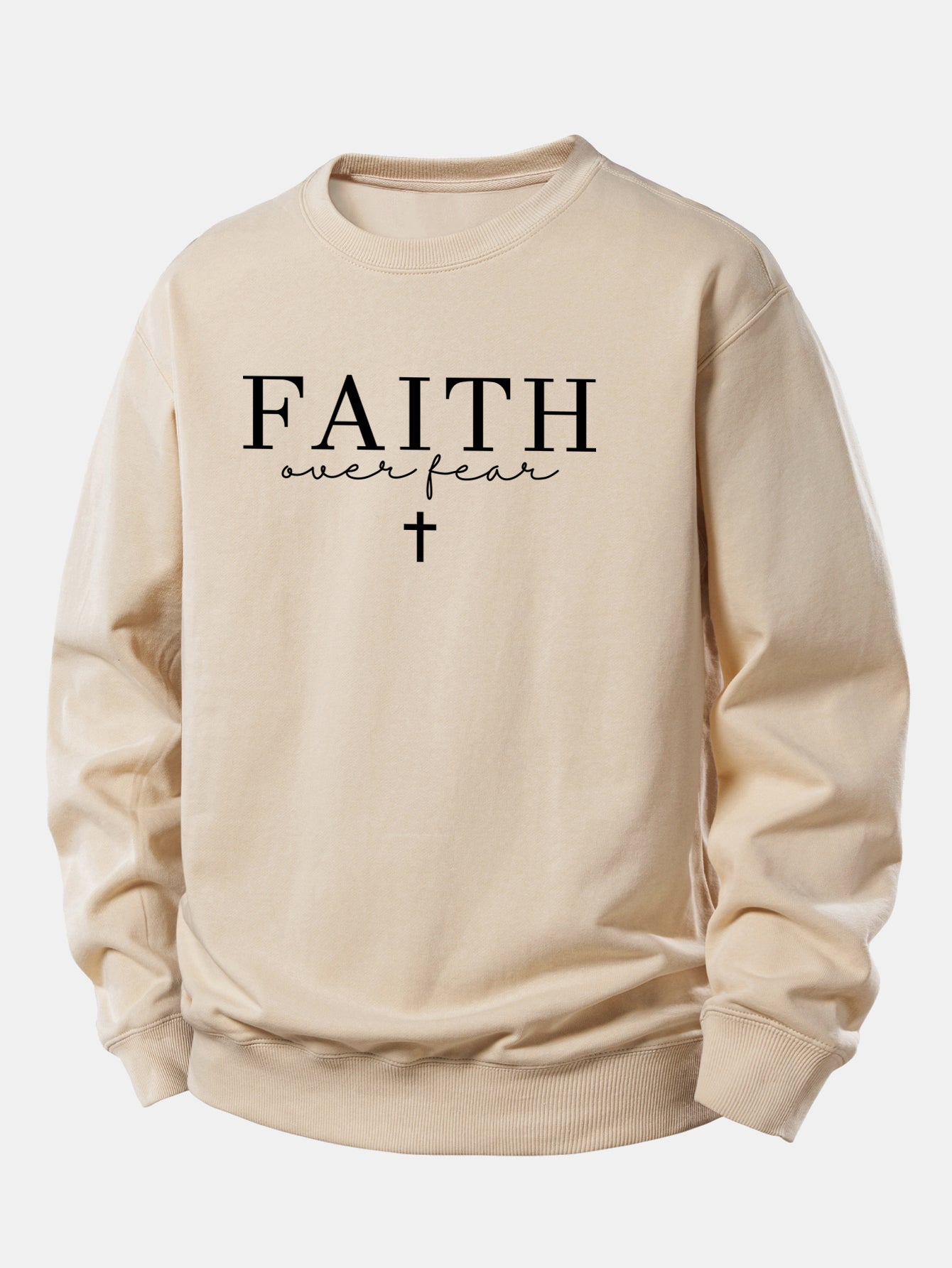 Featuring the uplifting ''Faith Over Fear'' slogan, this cozy sweatshirt is a daily reminder to stay strong and hopeful. Crafted from soft, breathable fabric with a relaxed fit, it offers ultimate comfort and effortless style — perfect for casual days, lounging, or faith-based gatherings.