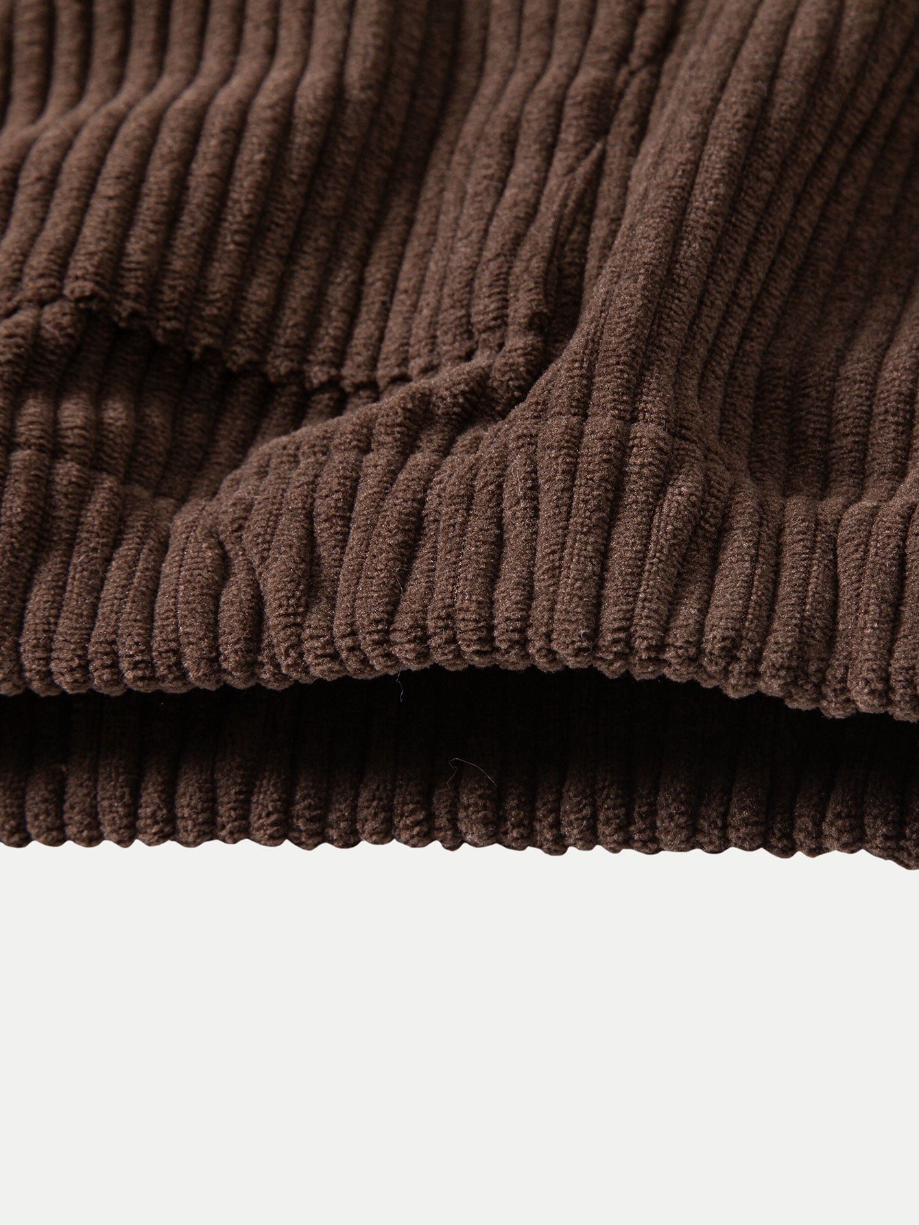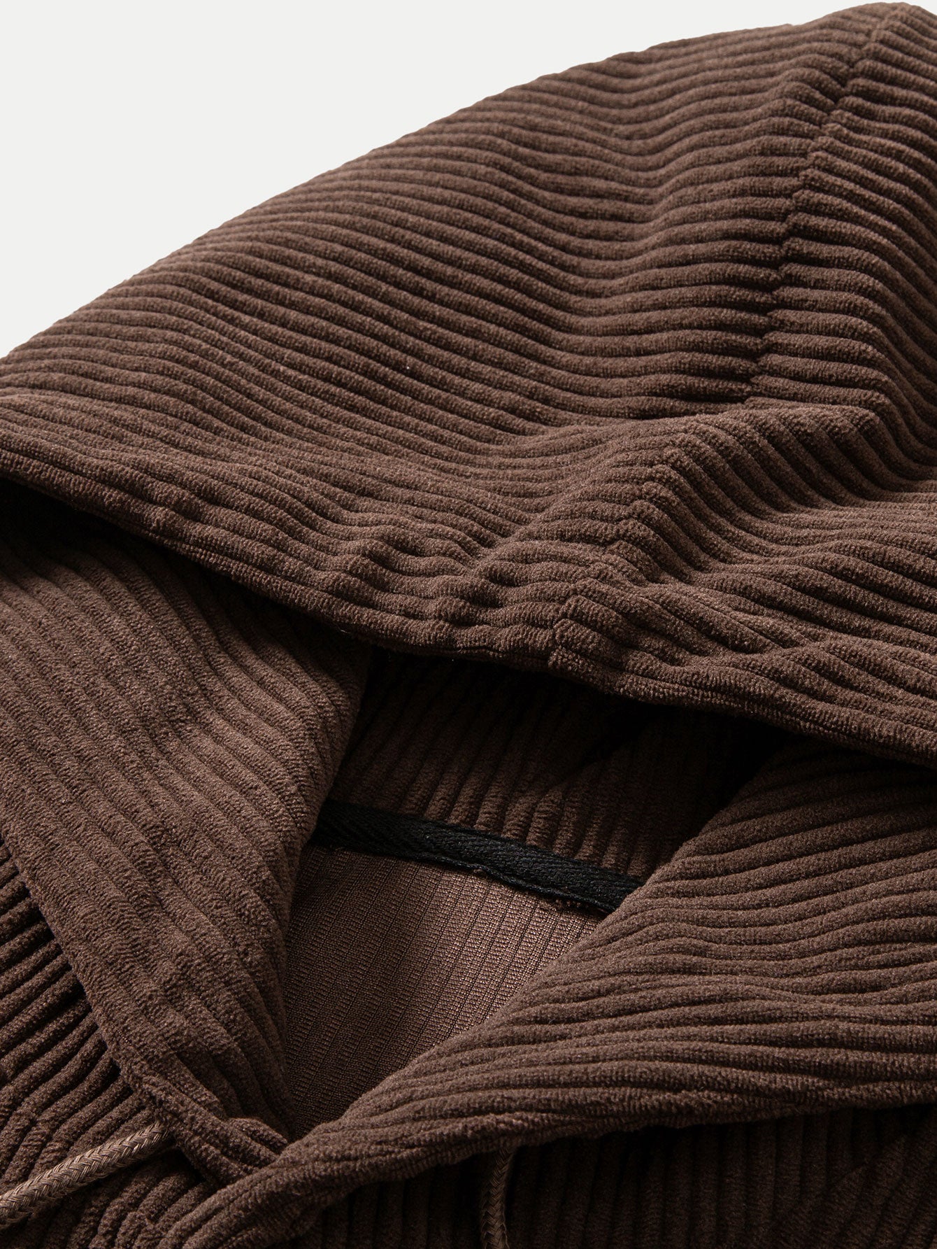 This corduroy hoodie combines minimalist design with cozy texture. Crafted from soft, fine-ribbed corduroy fabric, it delivers warmth and a comfortable touch with a refined look. The relaxed fit and dropped shoulders create an effortless casual silhouette, while the kangaroo pocket adds both function and style. Finished with an adjustable drawstring hood, this hoodie is perfect for layering or wearing solo — an ideal piece for a laid-back, modern winter style.