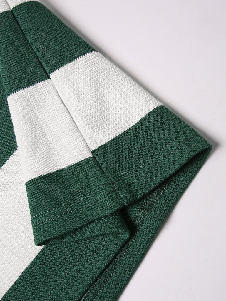 Relax Fit Waffle Wide Striped Polo Sweatshirt