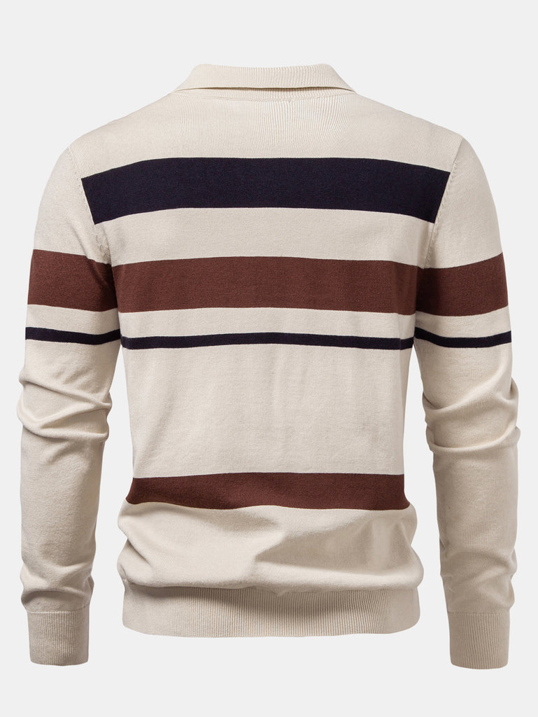 ポロシャツは、クラシックなストライプ柄と長袖を備えた柔らかいニット生地で作られており、洗練されつつリラックスした印象を与えます。スリムフィットのテーパードパンツと組み合わせることで、万能で快適なスリークなシルエットを実現します。仕事、週末、社交の場に最適で、昼夜を問わずシームレスにスタイルを演出します。